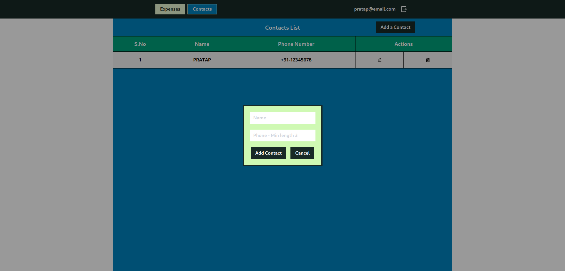 This App is a simple full stack web app. You can add your daily expenses and new contacts. Once added, they will be stored in your database. Initially you may not notice usefulness of adding your daily expenses or important contacts, but as your data increases day by day then you may feel it is useful.